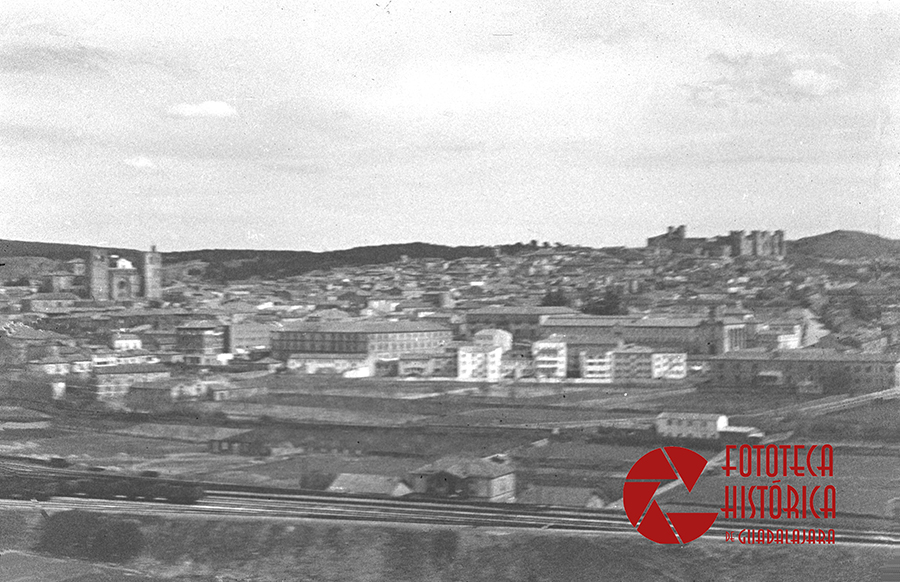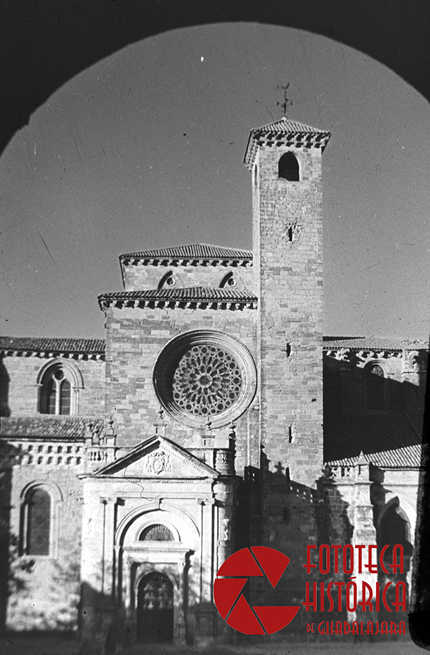 Desde la carretera que lleva a Atienza, par para fotografiar una vista panorámica de la ciudad. Luego entró en la Ciudad del Doncel, recorrió sus calles y entre las muchas fotos que hizo, fotografío la fachada meridional de catedral de seguntina con la torre del Gallo desde los soportales del ayuntamiento.
