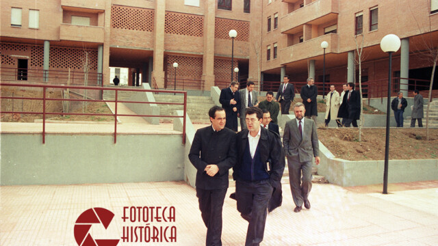 El presidente regional de Castilla-La Mancha, José Bono, visitaba la ciudad de Guadalajara en la mañana del 1 de marzo de 1989 para asistir a la entrega de llaves a sus nuevos propietarios, de 184 viviendas de una promoción pública promovida por el gobierno regional.
