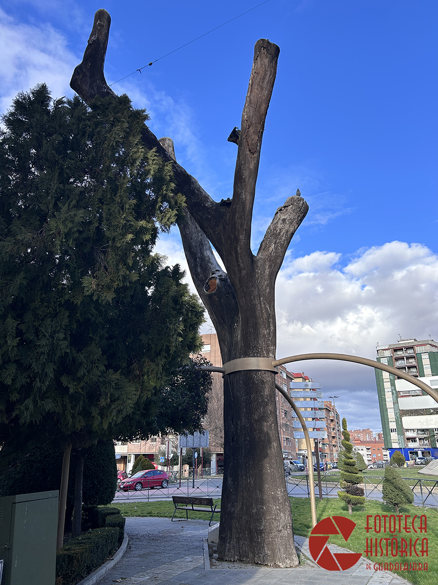 La vieja olma, se calcula tenía una edad de unos 200 años, y de la que solo nos queda el recuerdo de las fotografías y los restos de un tronco con las cuatro gruesas ramas que salen del principal con cierto parecido a un candelabro o como una gran mano abierta con cuatro portentosos dedos, como queriendo atrapar el cielo de la ciudad de Guadalajara, y sujetado por un armazón metálico que le sirve de sustento a la vieja madera. La olma poco a poco fue debilitándose, y en el año 2008 se encontraba ya moribunda y en 2010 terminó de secarse por completo y muriendo. Ningún tratamiento evitó su desaparición.