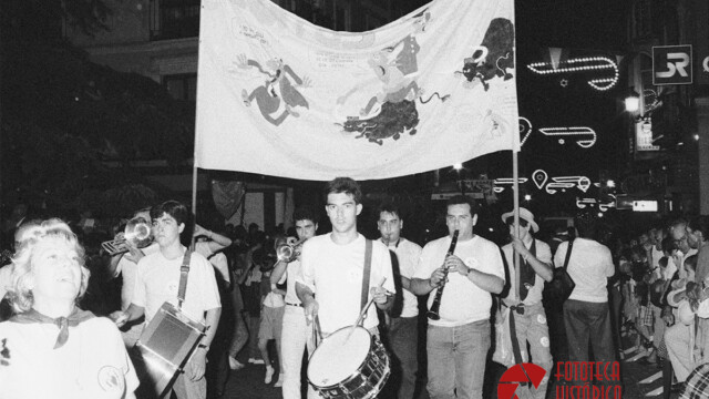 Seguidamente pasaron las diversas firmas comerciales e instituciones como las carrozas de Ibercaja, Diputación Provincial, Hermandad de Donantes de Sangre o la COPAG, y las autoridades con Irizar a la cabeza y José Herero Arcas, Gobernador Civil por aquellos años; y seguidamente los bailarines de la escuela de danza Mayte Becerra, que, junto, a la banda de música provincial completaban la primera parte del desfile.