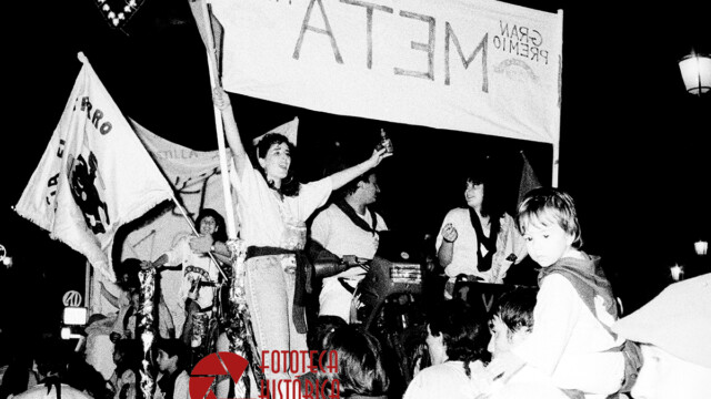 Era el 9 de septiembre de 1990, tras el esperado pregón de la periodista María Teresa Campos, que tuvo que acotar, principalmente, por el lanzamiento de huevos hacia el balcón consistorial; arrancó el tradicional desfile de carrozas que inauguraban las ferias de 1990 y que partía desde los aledaños del Palacio del Infantado para recorrer la Calle Mayor y llegar hasta el recinto ferial.