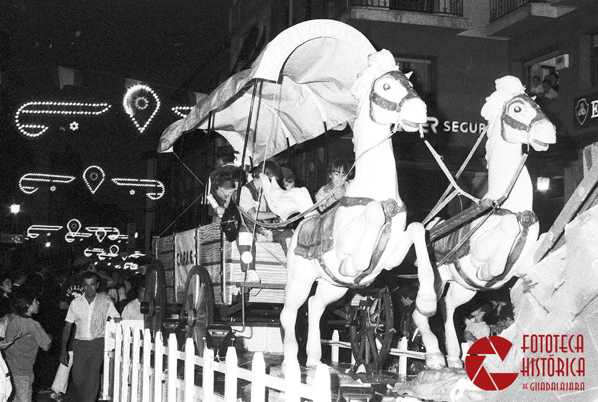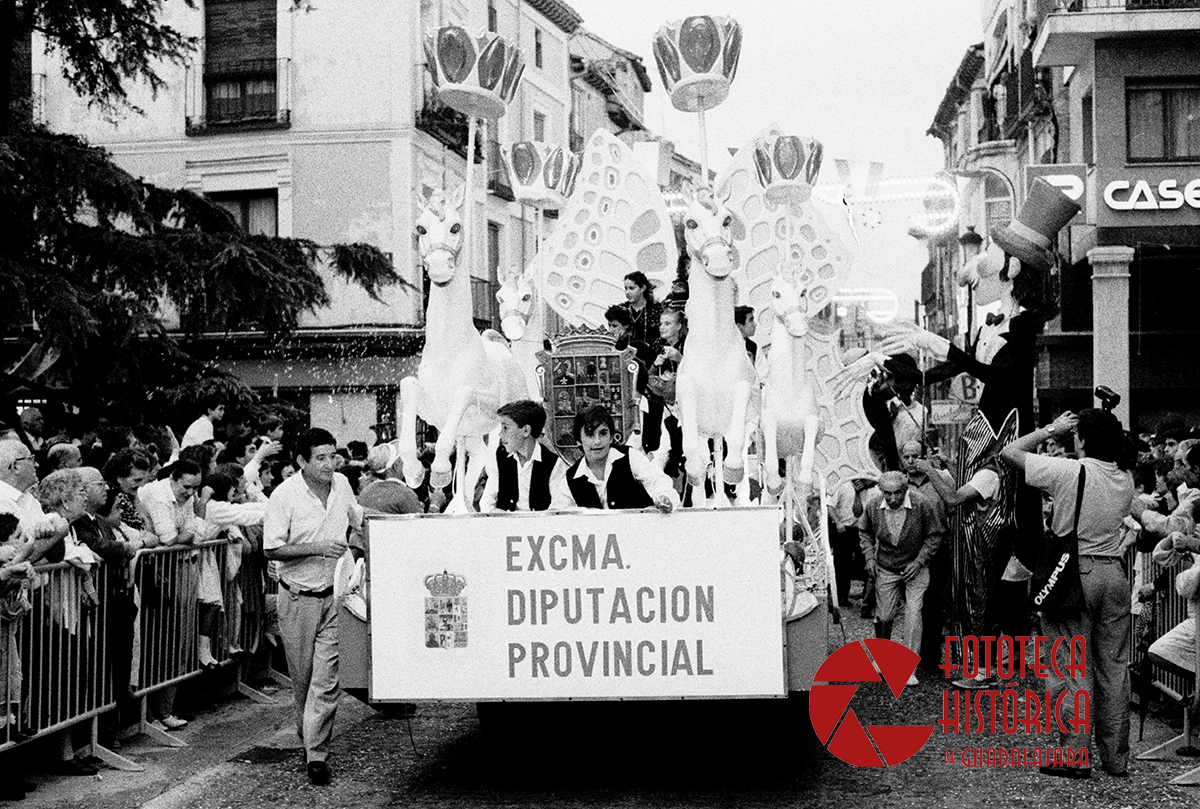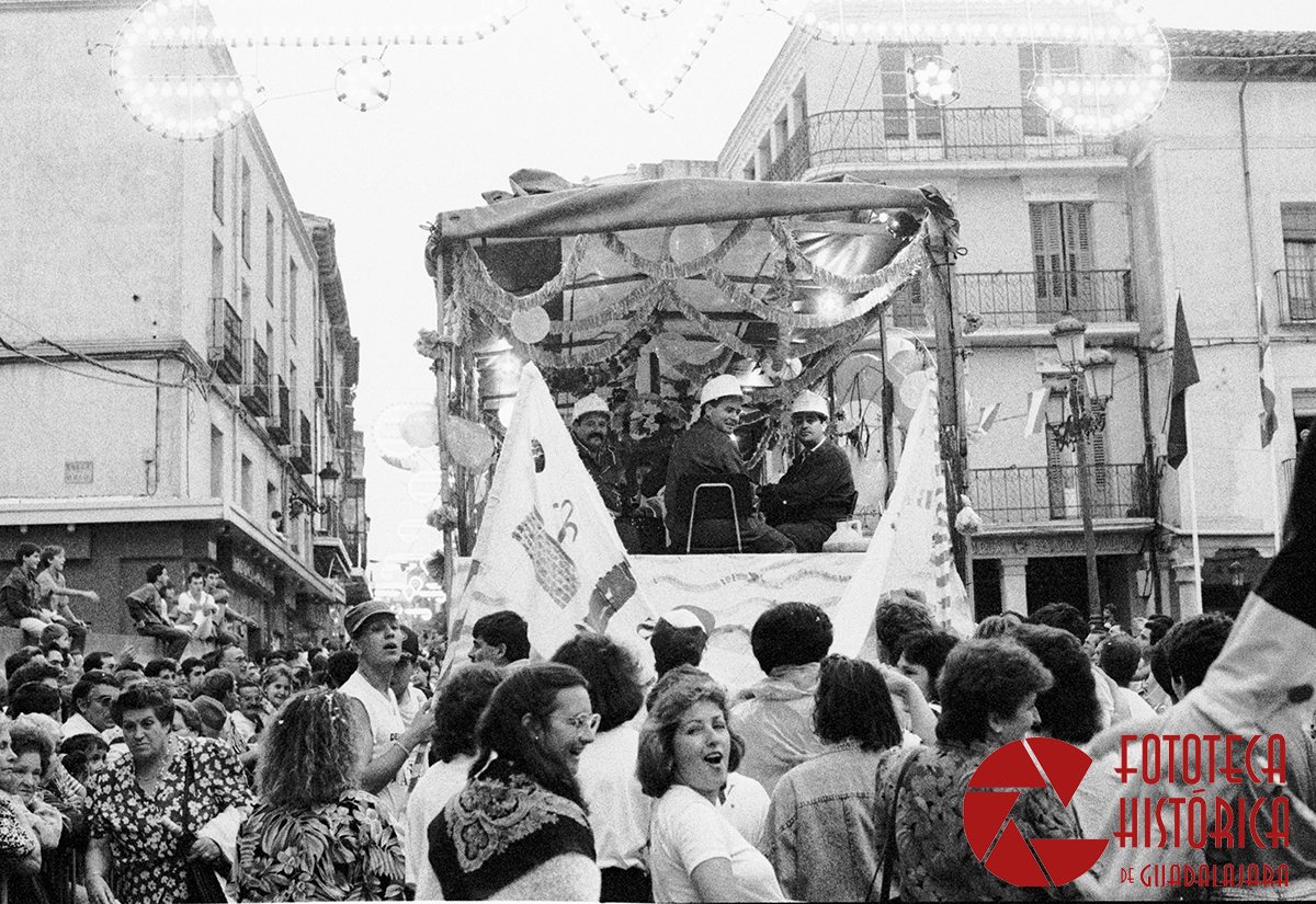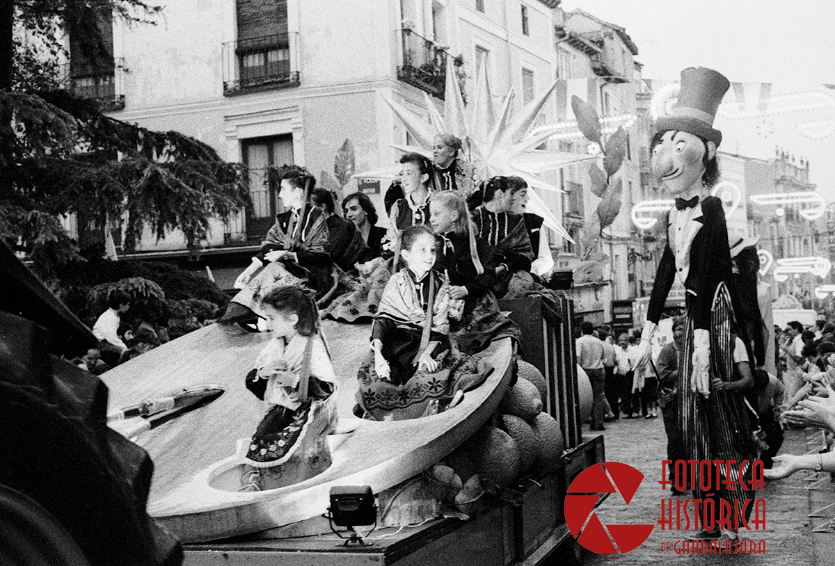 Era el 9 de septiembre de 1990, tras el esperado pregón de la periodista María Teresa Campos, que tuvo que acotar, principalmente, por el lanzamiento de huevos hacia el balcón consistorial; arrancó el tradicional desfile de carrozas que inauguraban las ferias de 1990 y que partía desde los aledaños del Palacio del Infantado para recorrer la Calle Mayor y llegar hasta el recinto ferial.
